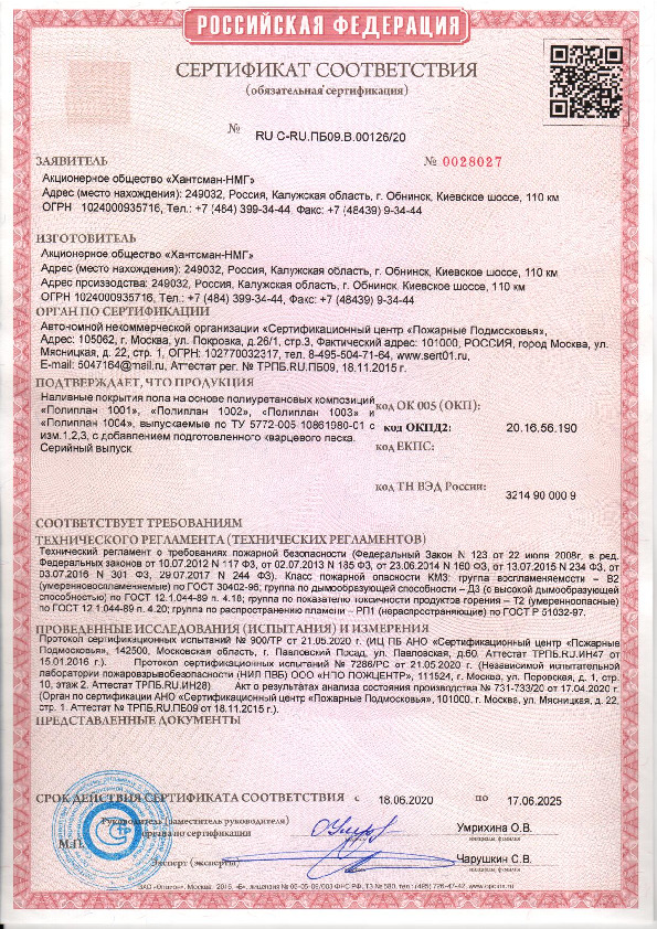 | Комплектная упаковка | 36 кг (цвет по карте цветов Хантсман-НМГ), (металлическое ведро с герметичной крышкой и полиэтиленовая канистра) |